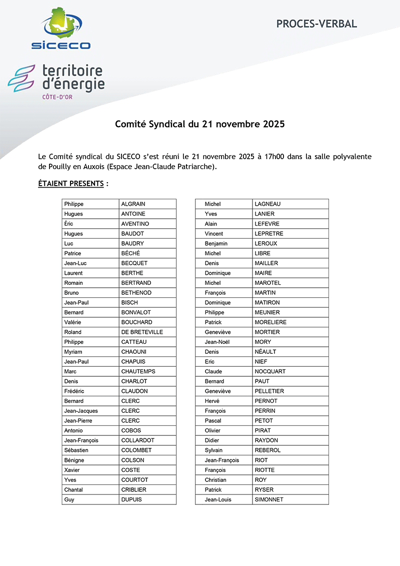 Recueil des délibérations de l’Assemblée Générale du Comité Syndical du 21 novembre 2025 jeudi 8 janvier 2026